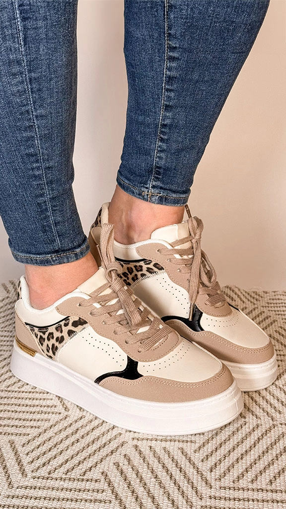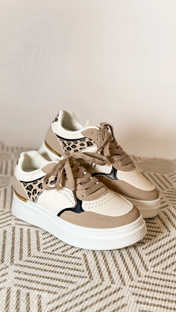 Ženske superge so popolna izbira za tiste, ki iščejo kombinacijo elegance in udobja. S svojo nežno kombinacijo bež, bele in črne barve ter atraktivnim leopardjim vzorcem na zadnjem delu, prinašajo svež in moderen videz. Zasnovane za vsakodnevno nošenje, nudijo odlično udobje in oporo, hkrati pa so idealne za ustvarjanje trendovskega stila. So vsestranske in primerne za različne priložnosti, od vsakodnevnega nošenja do sproščenih vikend outfitov.
